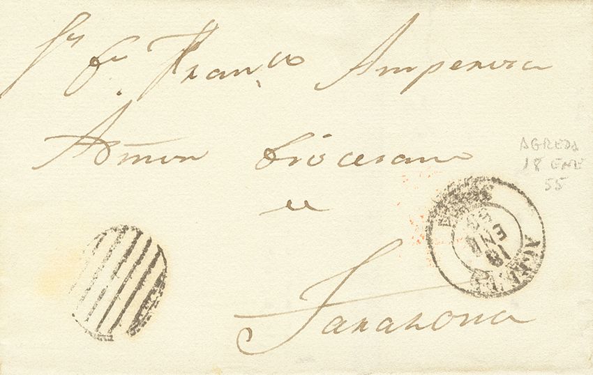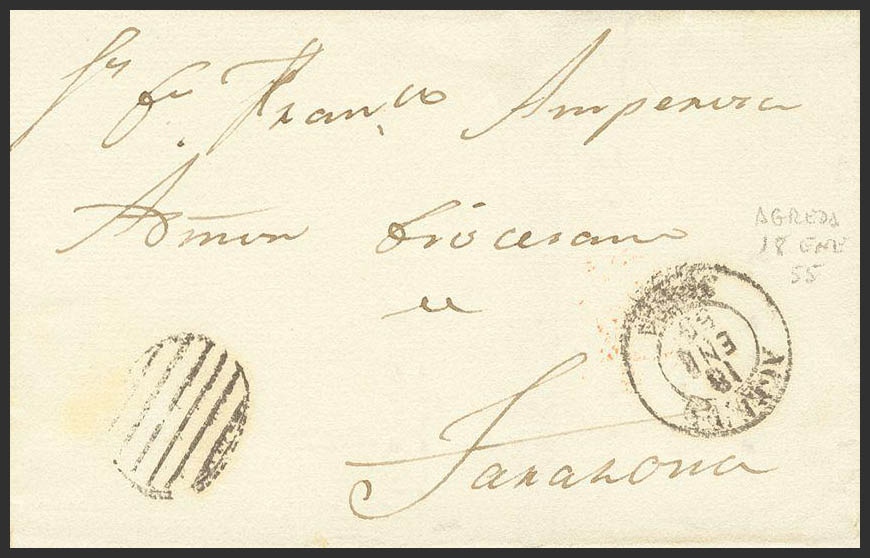1855. AGREDA a TARAZONA. Marca PARRILLA, actuando de franquicia. MAGNIFICA Y RARA.