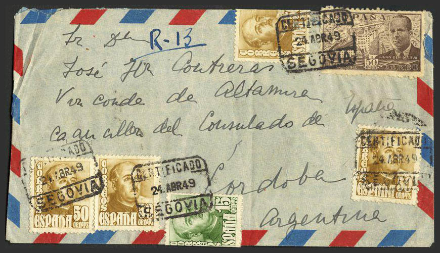 Castilla y León. Historia Postal. CERTIFICADO / SEGOVIA, al dorso tránsito. MAGNIFICA.