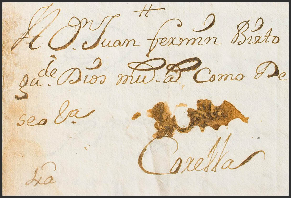 1737. AGREDA a CORELLA. Marca SORA, en tinta de escribir de Agreda (P.E.2) edición 2004. BONITA Y MUY RARA.