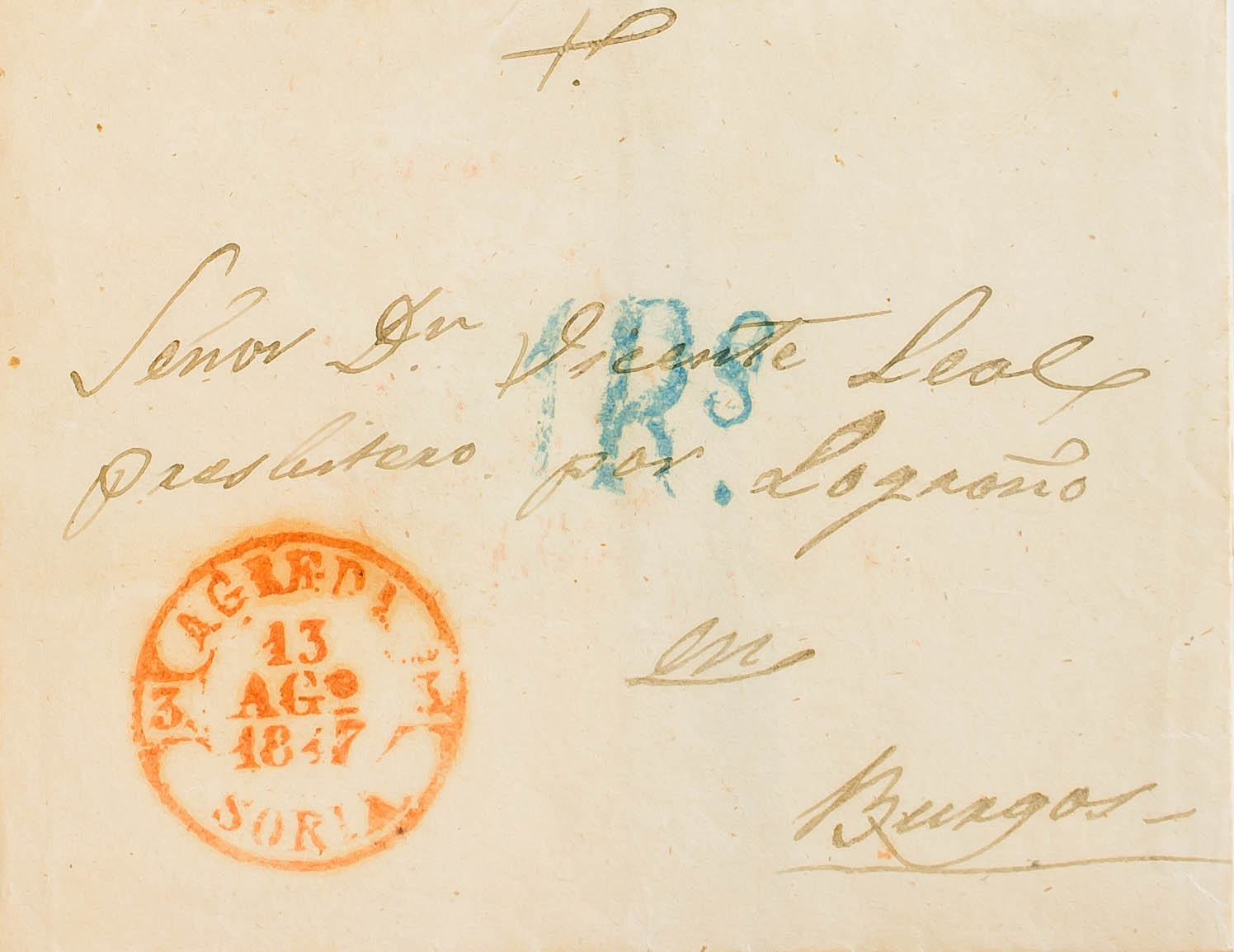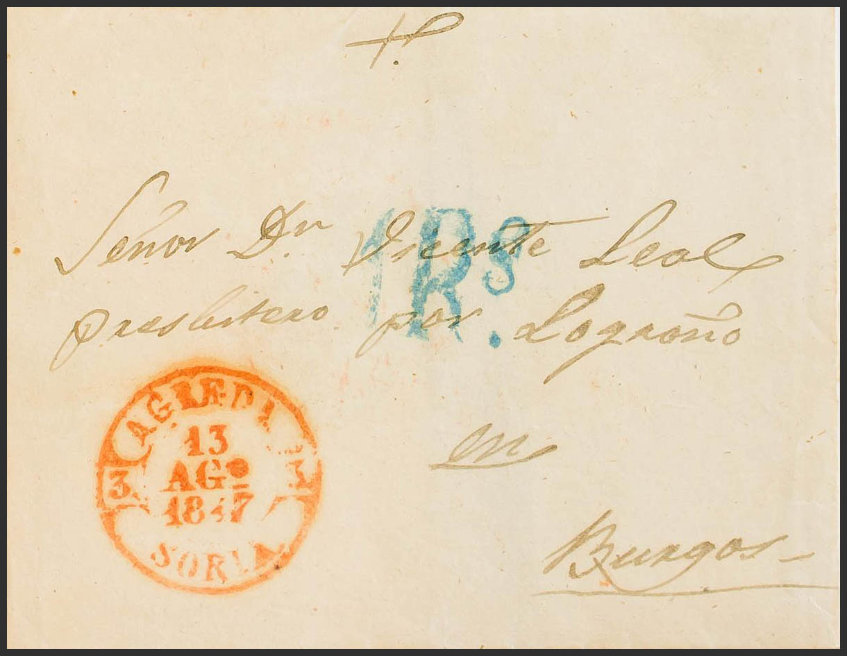 1847. AGREDA a BURGOS. Baeza AGREDA / SORIA. MAGNIFICA.