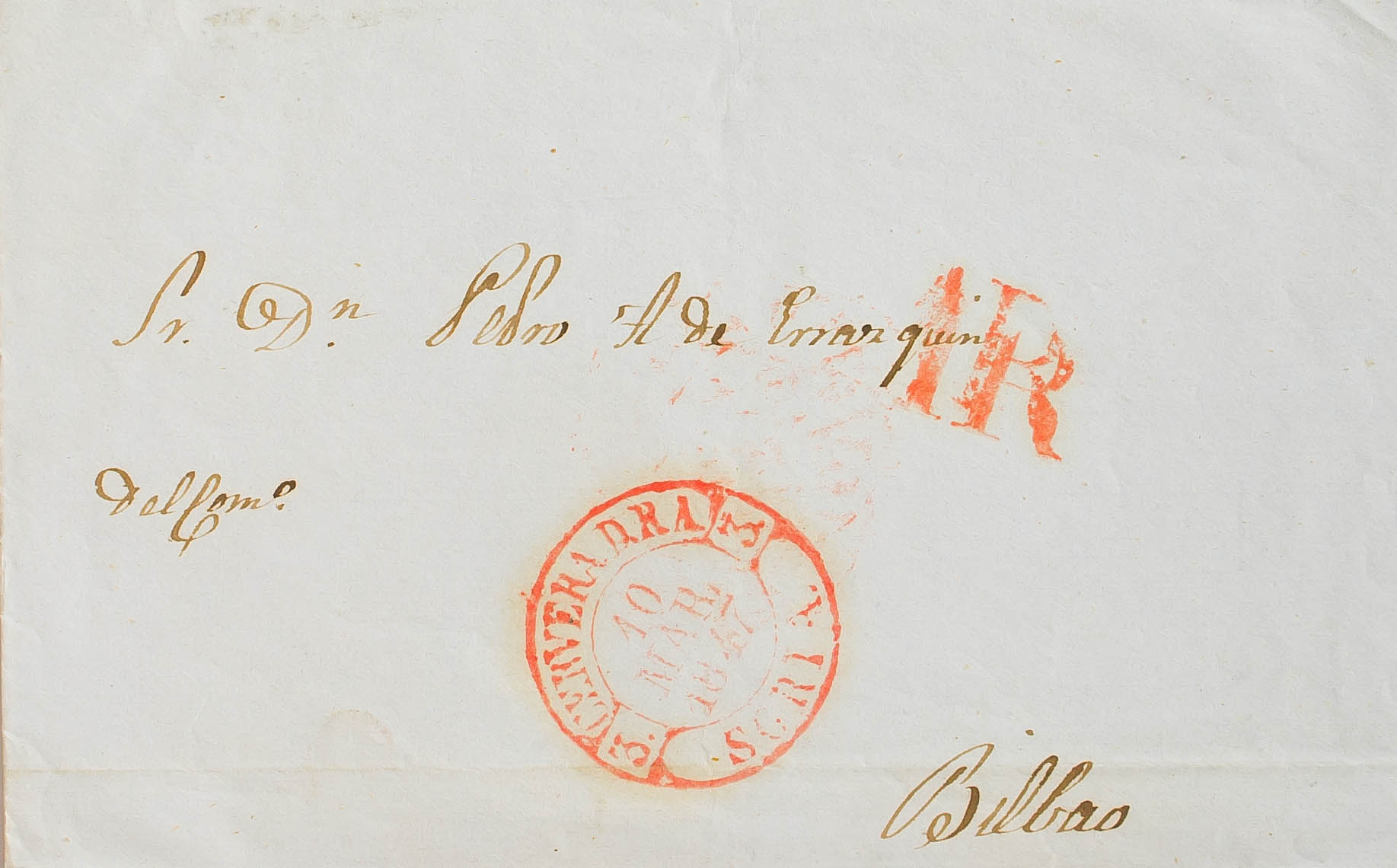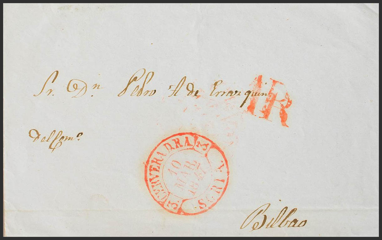 1847. CERVERA DE RIO ALHAMA a BILBAO. Baeza CERVERA D.R.A. / SORIA. MAGNIFICA.