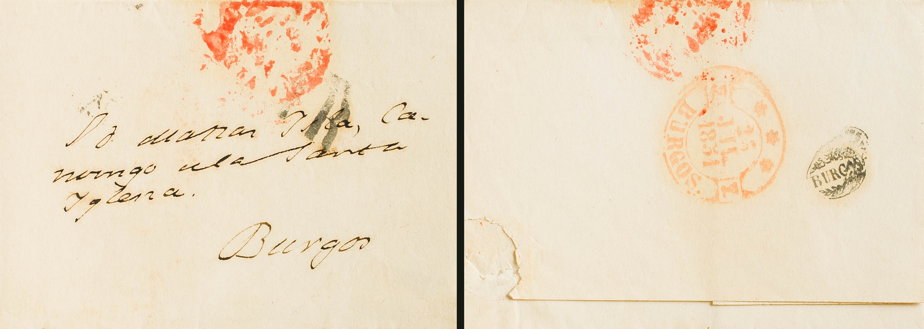 1851. Dirigida a BURGOS. Marca BURGOS, de llegada (P.E.32) edición 2004. MAGNIFICA Y RARA.