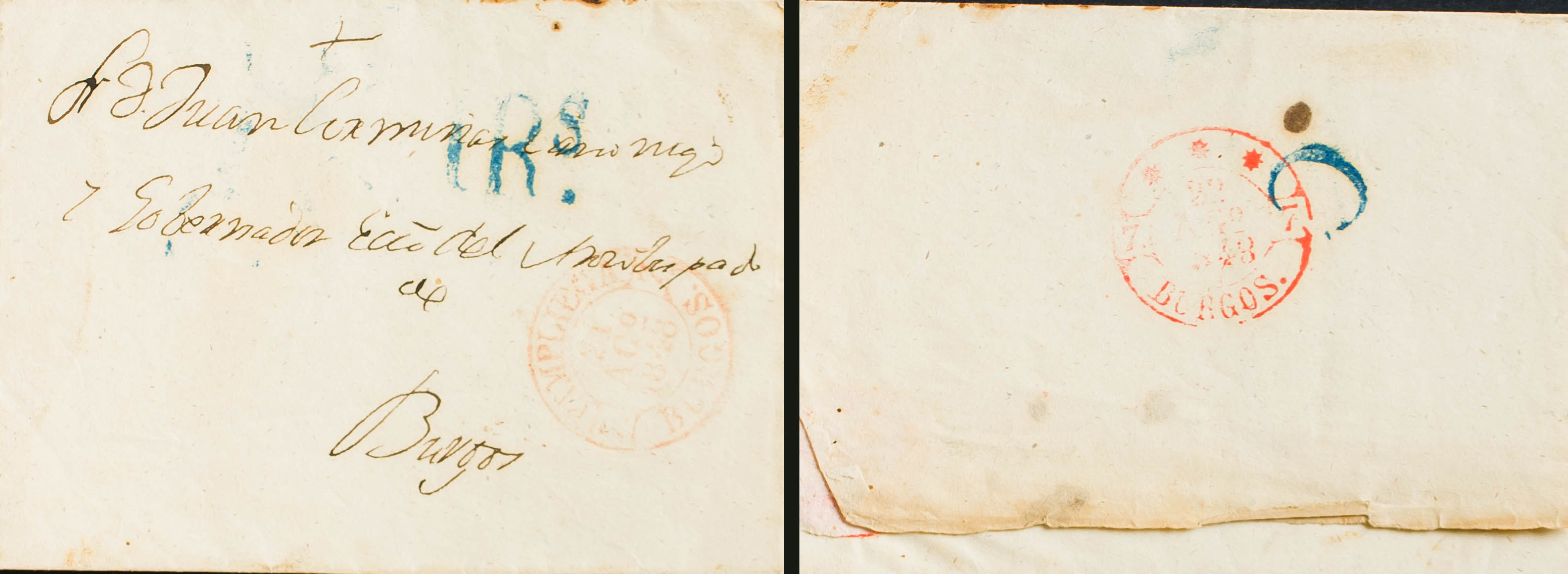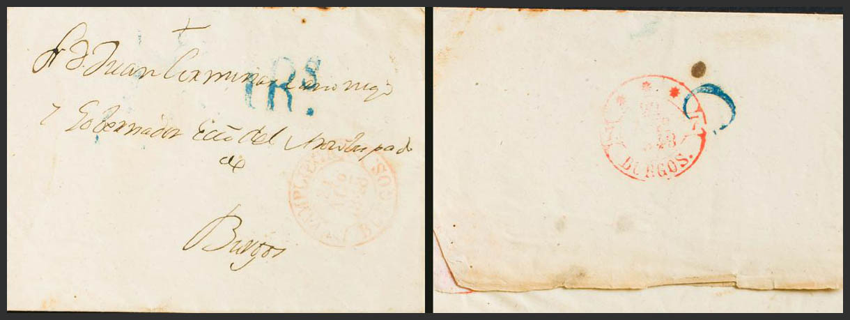 1848. PAMPLIEGA a BURGOS. Marca "C", de llegada (al dorso) (P.E.28) edición 2004. MAGNIFICA Y RARISIMA.
