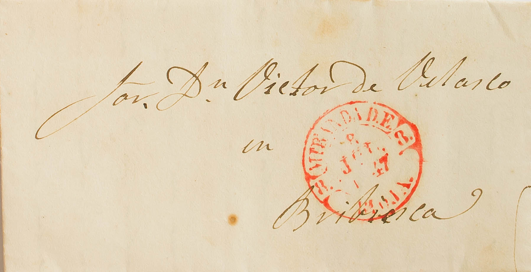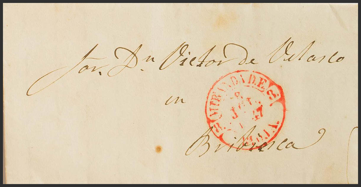 1847. MIRANDA DE EBRO a BRIVIESCA. Baeza MIRANDA D.E. / RIOJA, en rojo. MAGNIFICA.
