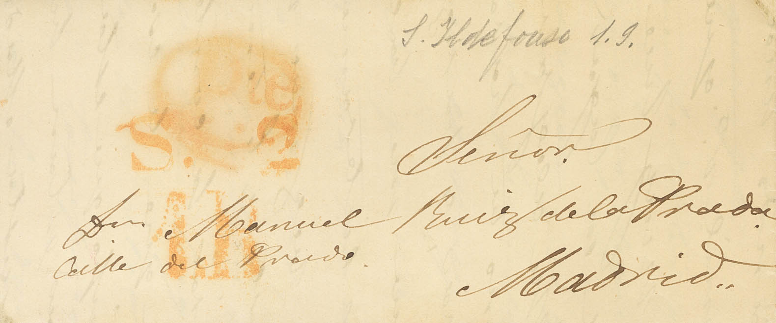 (1829ca). Correo de "Parte" de SAN ILDEFONSO a MADRID. Marca PTE., en rojo (P.E.77) edición 2004. MAGNIFICA Y RARA.