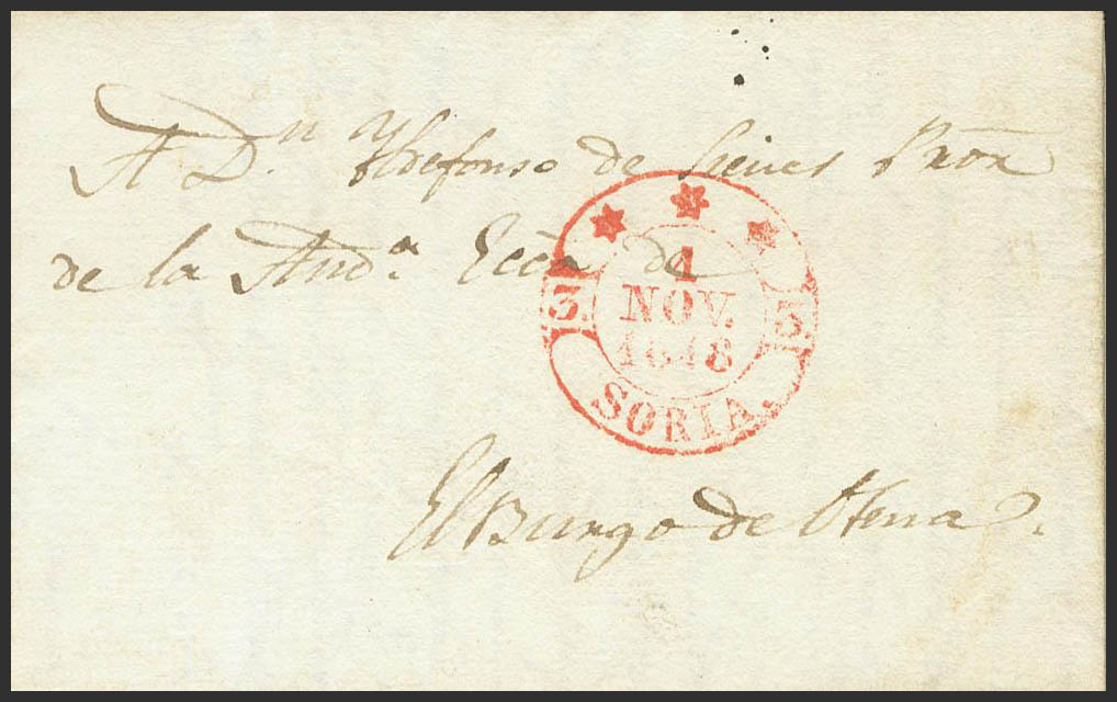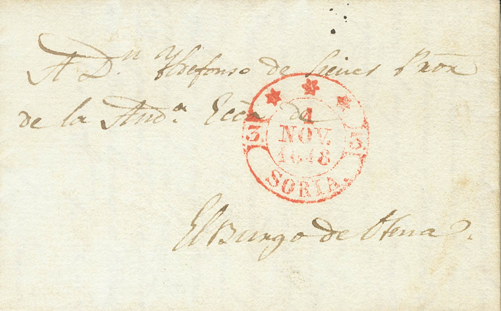 1848. CUBO DE LA SOLANA (SORIA) a BURGO DE OSMA. Fechador baeza *** / SORIA. MAGNIFICA.