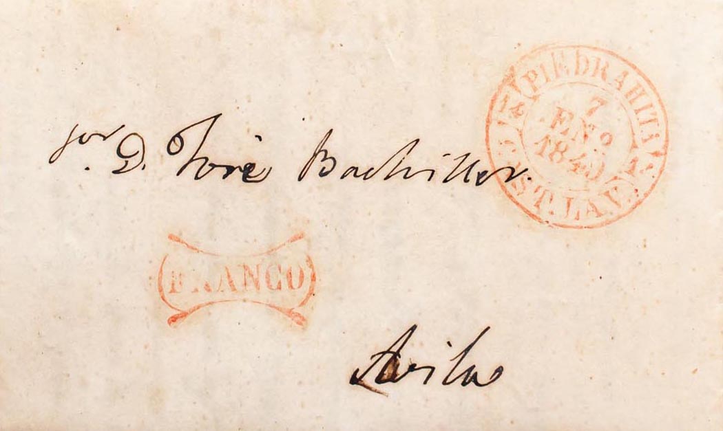 1845. PIEDRAHITA a AVILA. Marca de uso general FRANCO, en rojo de Piedrahita (P.E.3) edición 2004. MAGNIFICA Y RARA.