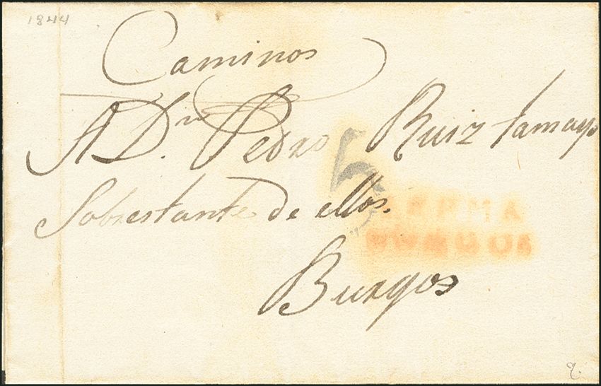 1844. LERMA a BURGOS. Marca LERMA / BURGOS, en rojo (P.E. 1) edición 2004. RARA.