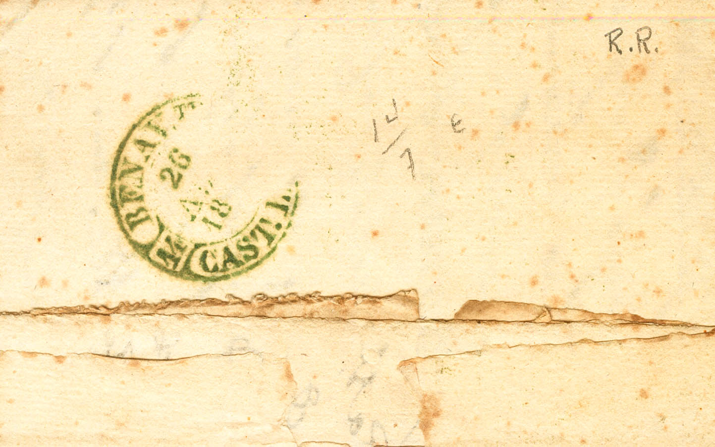 1845. LOS BARRIOS (PALENCIA) a LA UNION DE CAMPOS. Baeza HERRERA D.R.P. / M.DE SANTR, en verde. MAGNIFICA Y MUY RARA.
