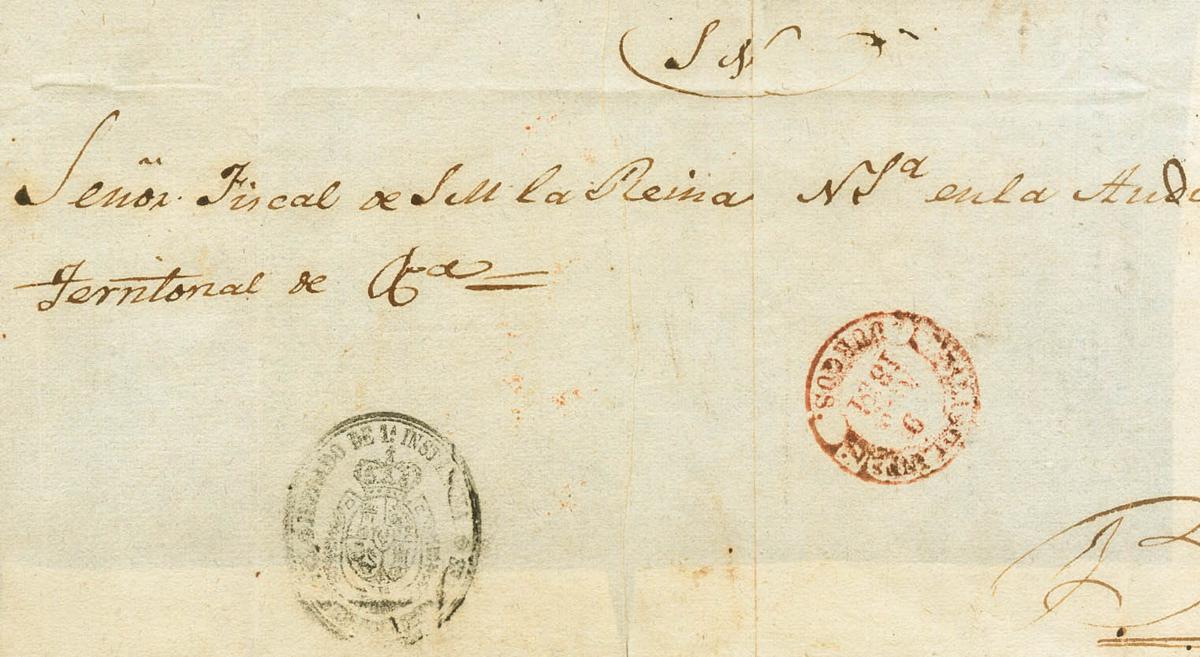 1851. Frente de Plica Judicial de SALAS DE LOS INFANTES a BURGOS. Baeza SALAS D. L. INFS. / BURGOS. MAGNIFICO Y RARO.
