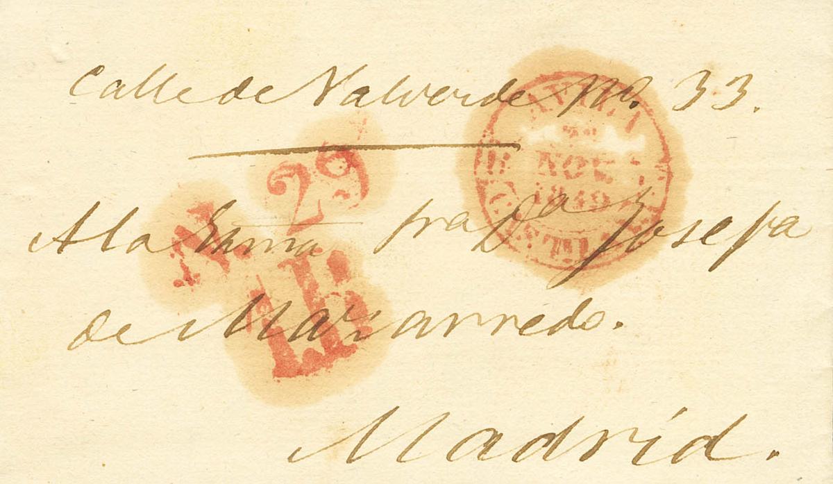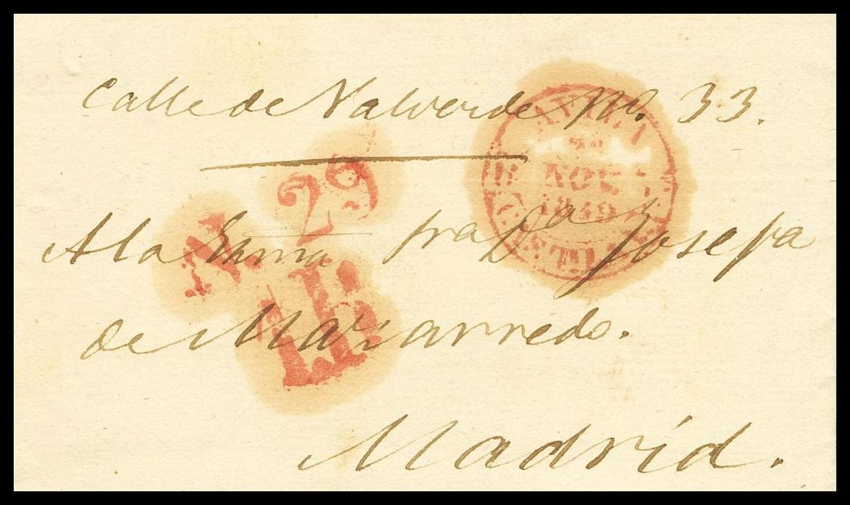 1849. AVILA a MADRID. Baeza AVILA / CAST.LA V., en rojo. MAGNIFICA.