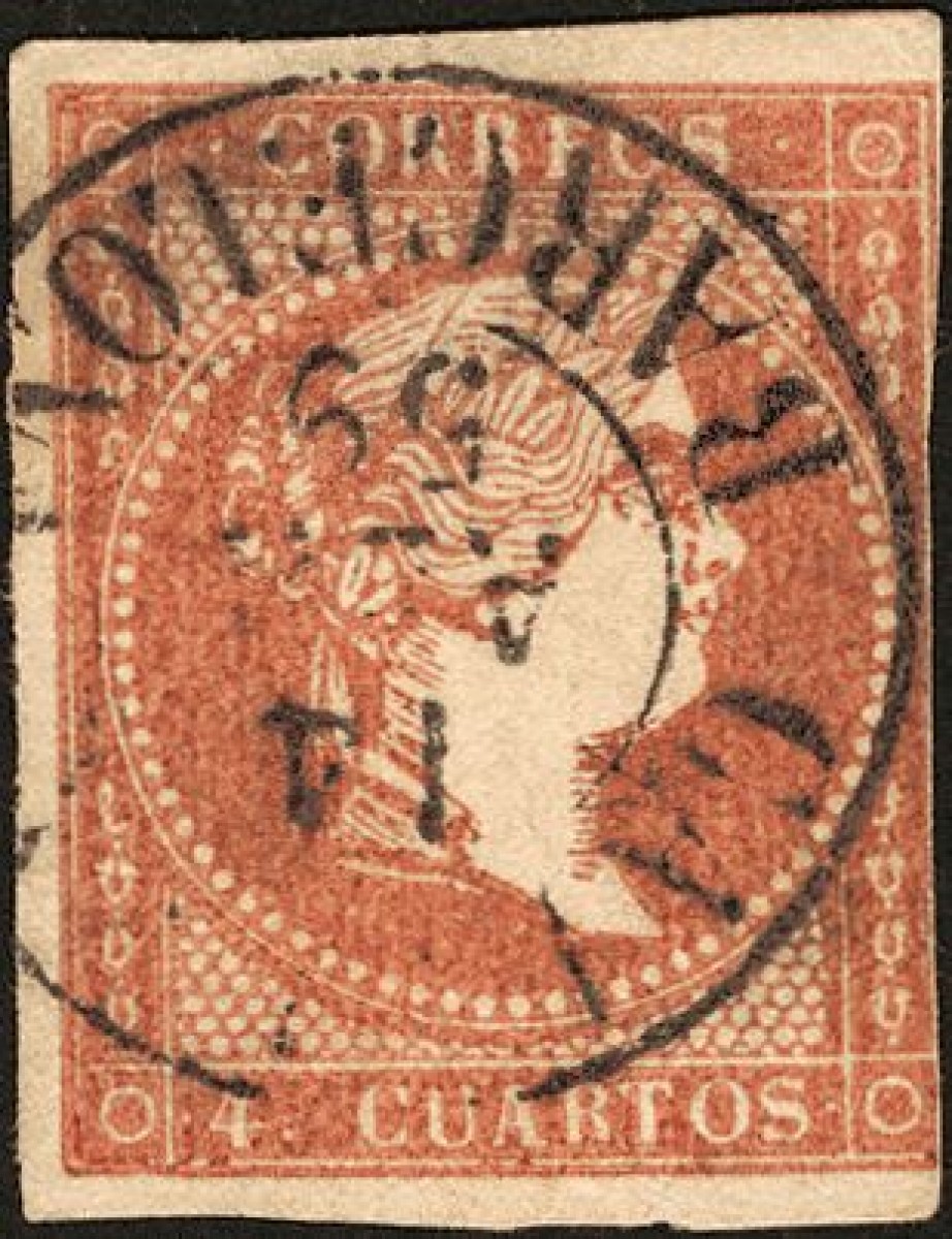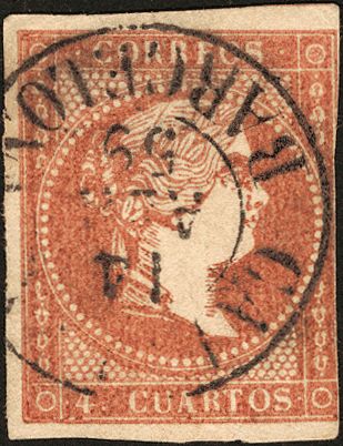 48. 1856. 4 cuartos rojo. Matasello CALELLA / BARCELONA (Tipo I).