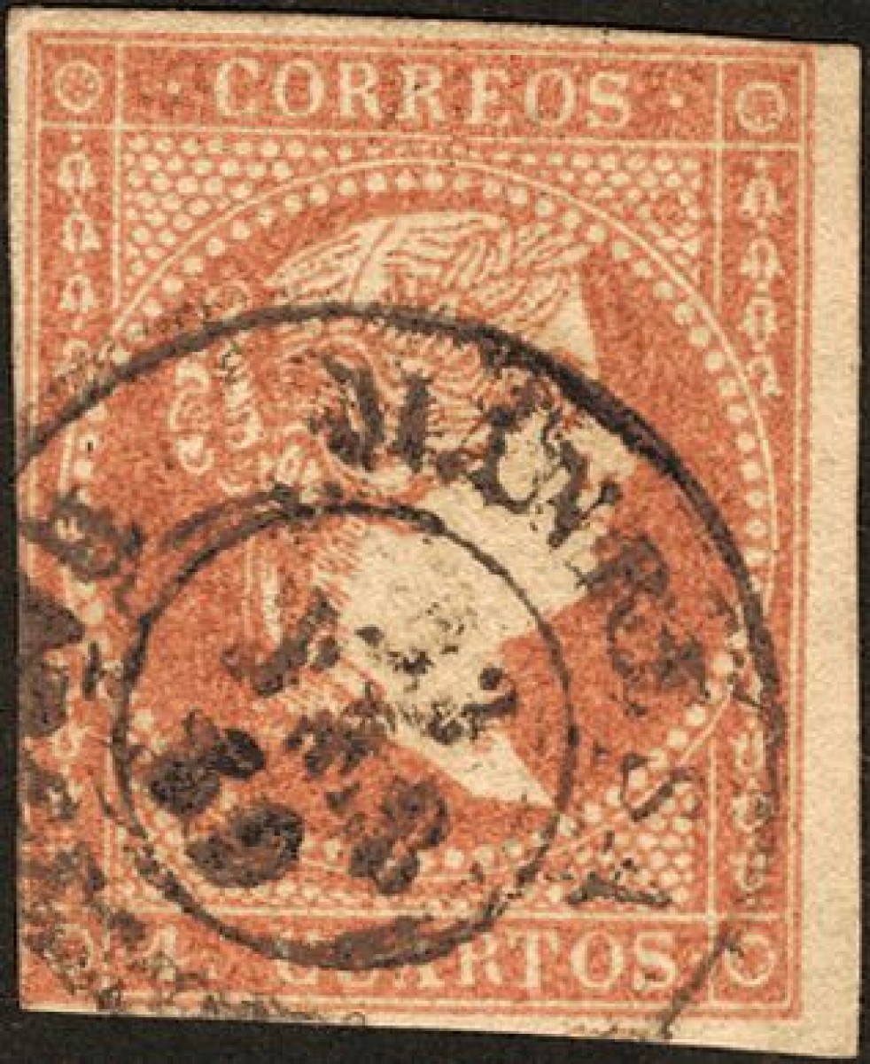 48. 1856. 4 cuartos rojo. Matasello MANRESA / BARCELONA.