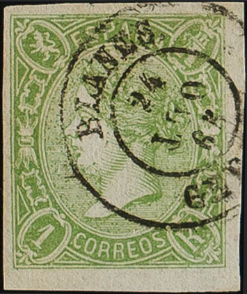 72. 1865. 1 real verde. Matasello BLANES / GERONA. MAGNIFICO. Edifil 2014: 109 Euros