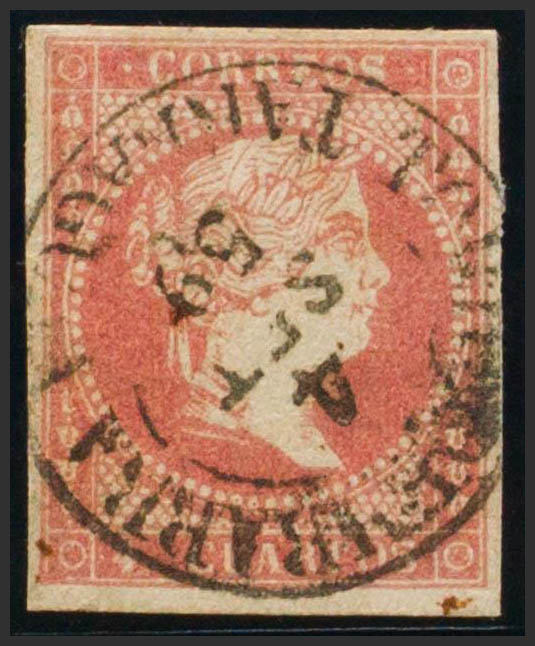 48. 1855. 4 cuartos rojo. Matasello TORREDEMBARRA / TARRAGONA (Tipo I). MAGNIFICO Y RARISIMO.