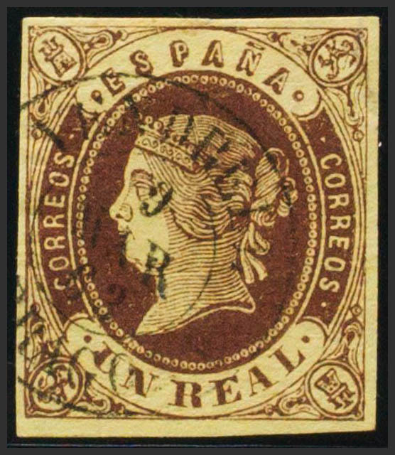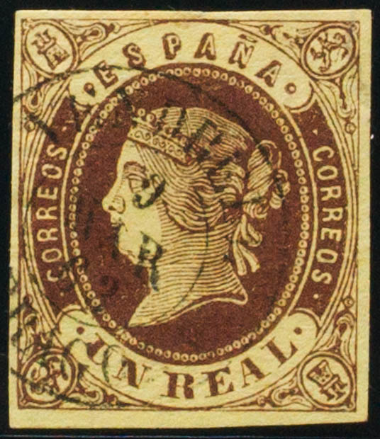 61. 1862. 1 real castaño. Matasello VENDRELL / TARRAGONA. MAGNIFICO.