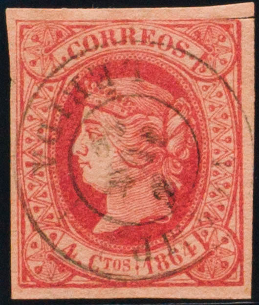 64. 1864. 4 cuartos rojo. Matasello TREMP / LERIDA. MAGNIFICO.