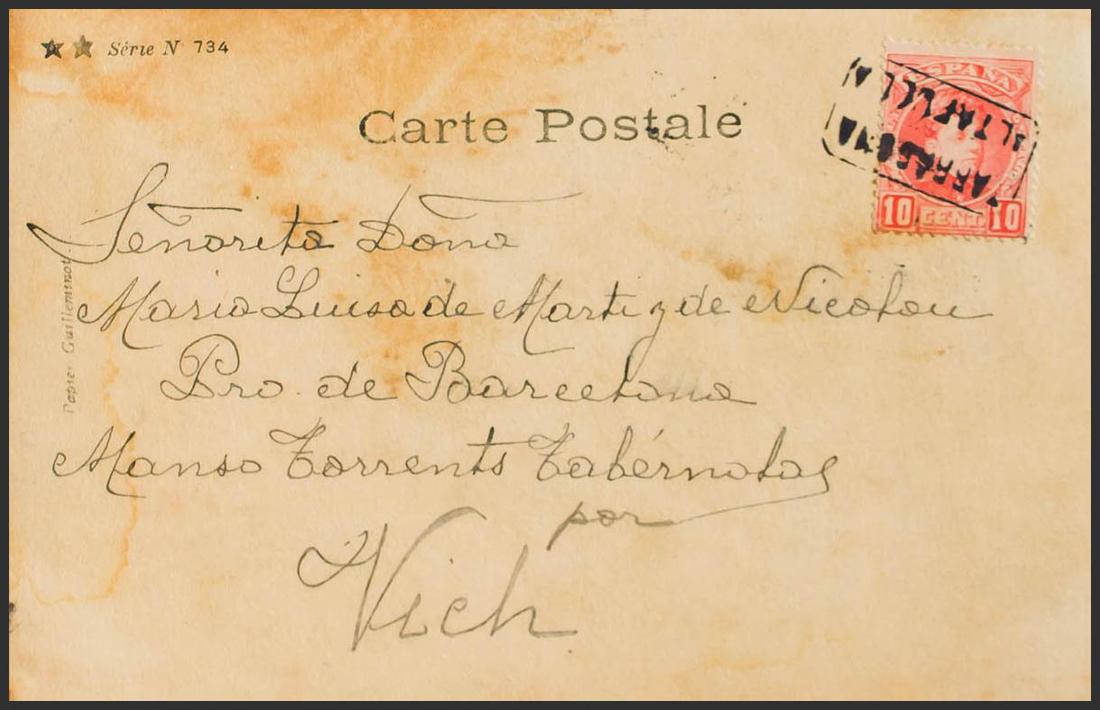 243. (1905ca). 10 cts rojo. Tarjeta de ALTAFULLA (TARRAGONA) a VICH. Matasello carterÃa TARRAGONA / ALTAFULLA. MAGNIFICA.