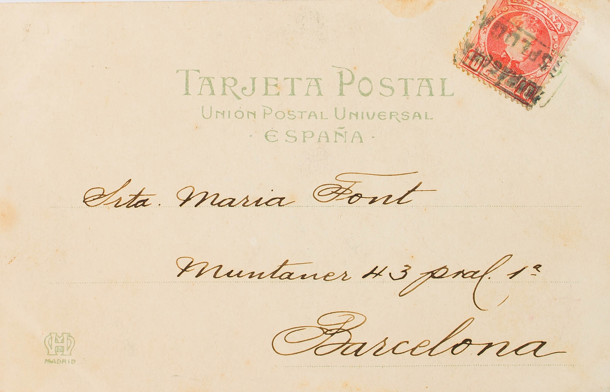 243. 1904. 10 cts rojo (sello doblado hacia el dorso, conservado en su totalidad). Tarjeta de ESPLUGA (TARRAGONA) a BARCELONA. Matasello cartería TARRAGONA / ESPLUGA, en verde. MAGNIFICA.
