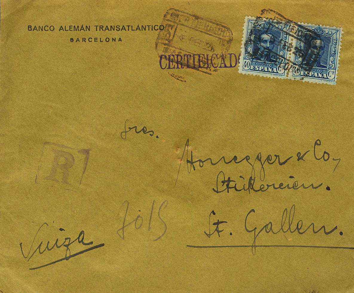Cataluña. Historia Postal. CERTIFICADO / BARCELONA, al dorso llegada. MAGNIFICA.