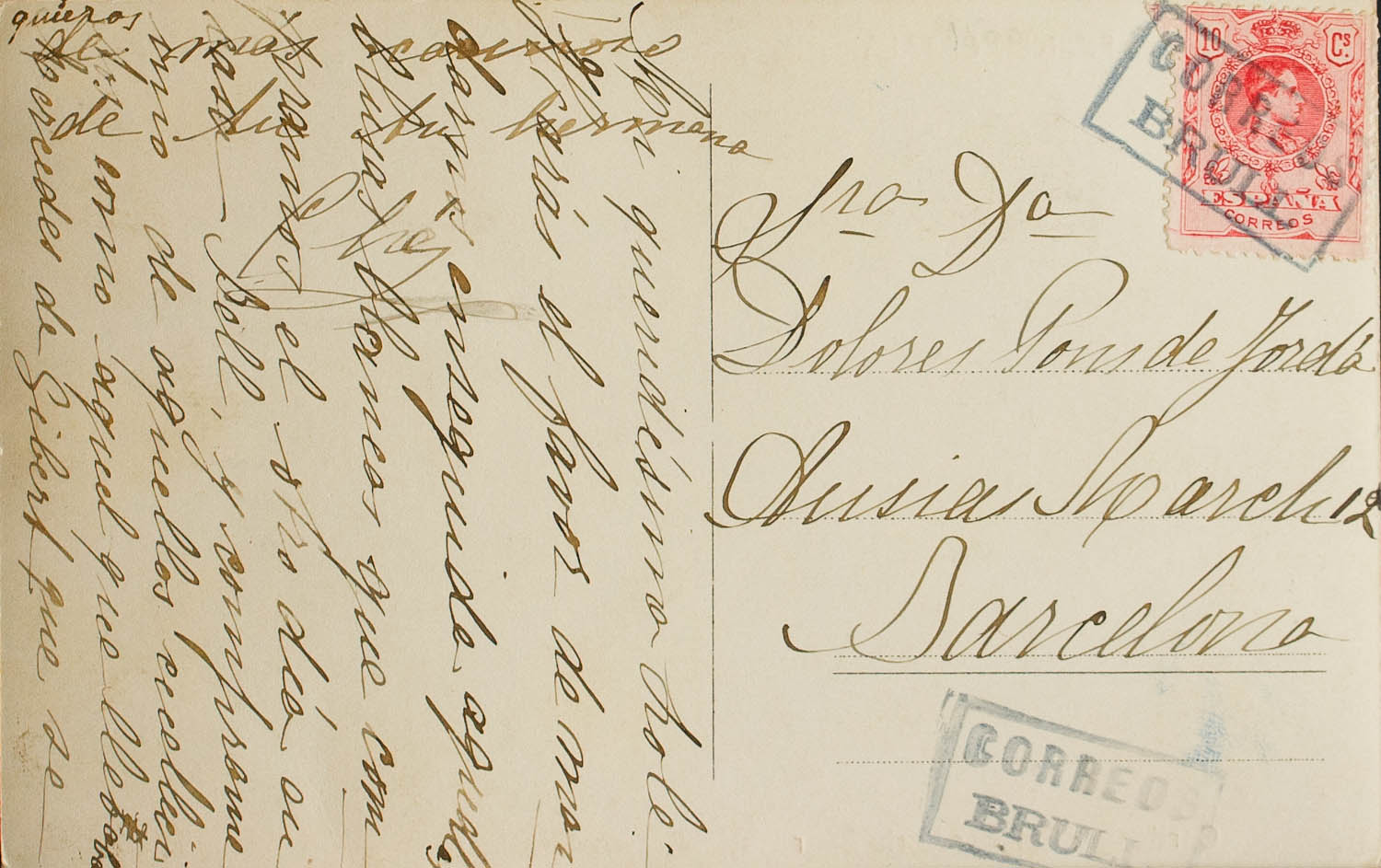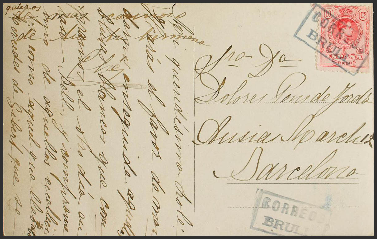 269. (1909ca). 10 cts rojo. Tarjeta Postal de BRULL (BARCELONA) a BARCELONA. Matasello carterÃa especial CORREOS / BRULL. MAGNIFICA Y RARISIMA.