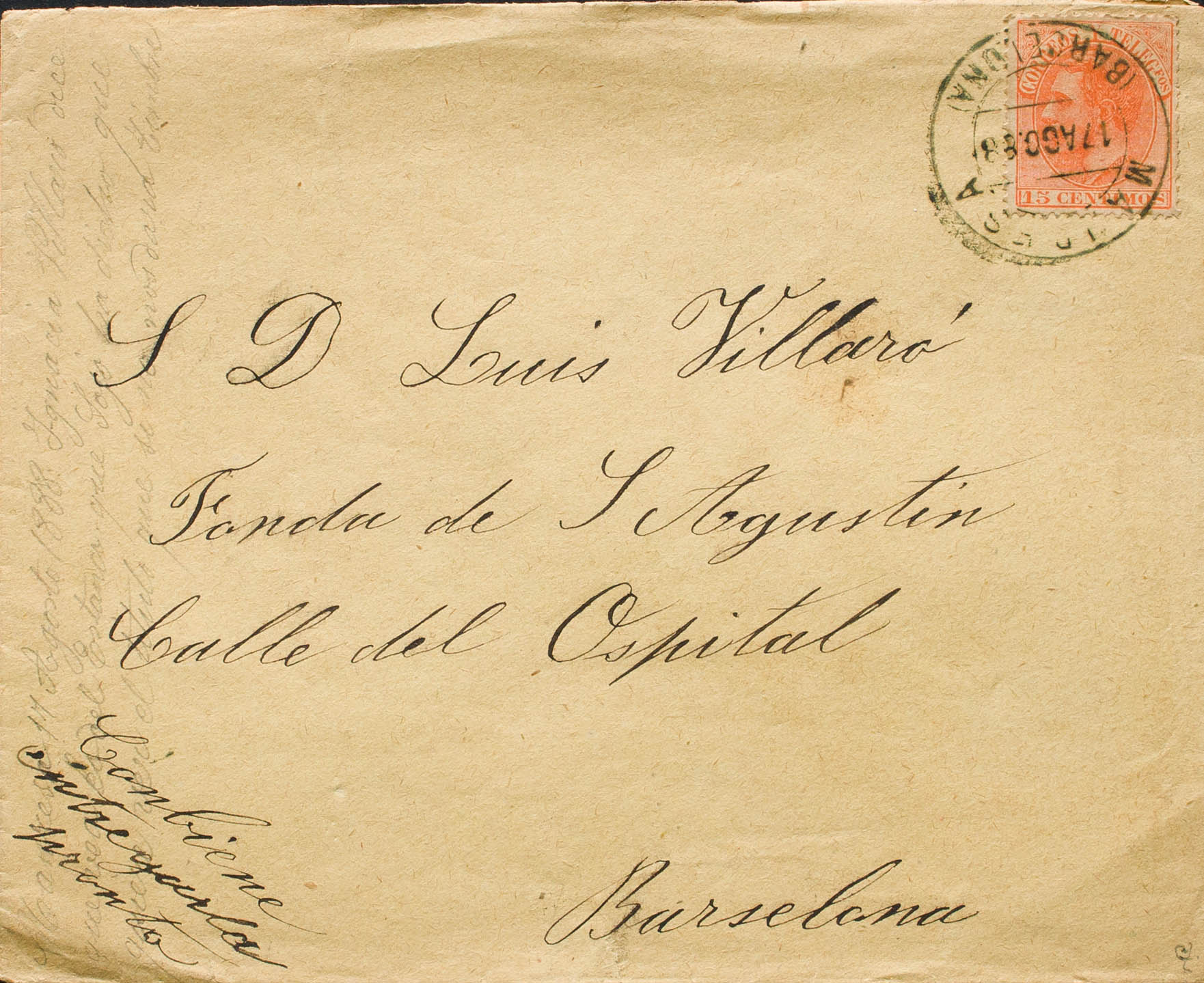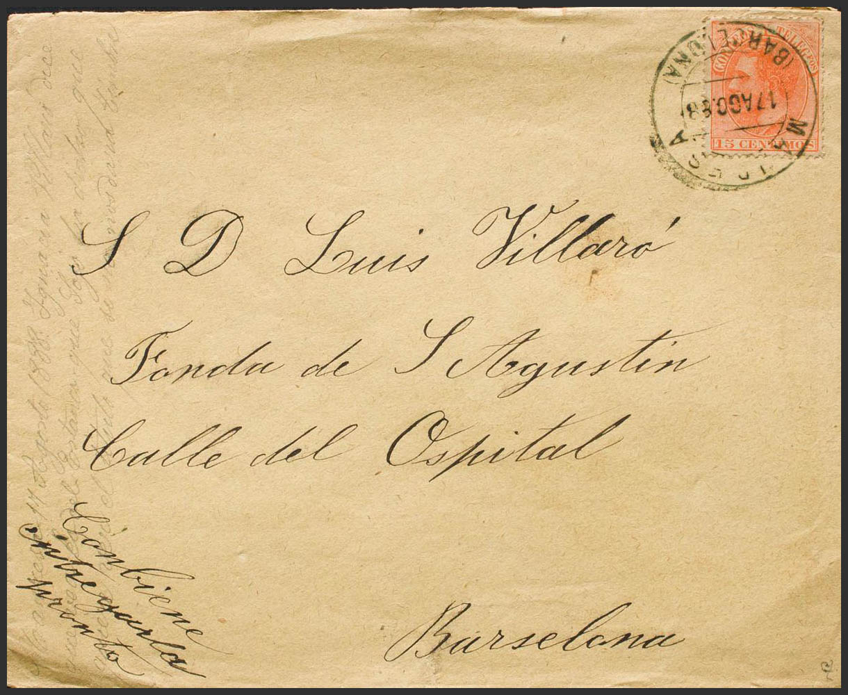 210. 1888. 15 cts naranja. MANRESA a BARCELONA. Matasello MANRESA / (BARCELONA). MAGNIFICA. Ex-Tizón.