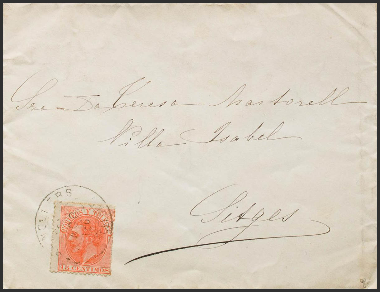 210. 1886. 15 cts naranja. GRANOLLERS a SITGES. Matasello trébol GRANOLLERS / (BARCELONA). MAGNIFICA. Ex-Tizón.