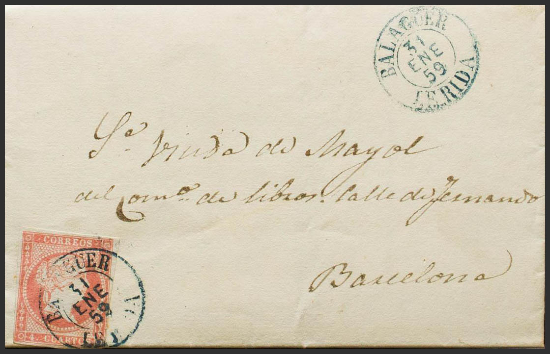 Cataluña. Historia Postal. BALAGUER / LERIDA (Tipo I), en azul. MAGNIFICA.