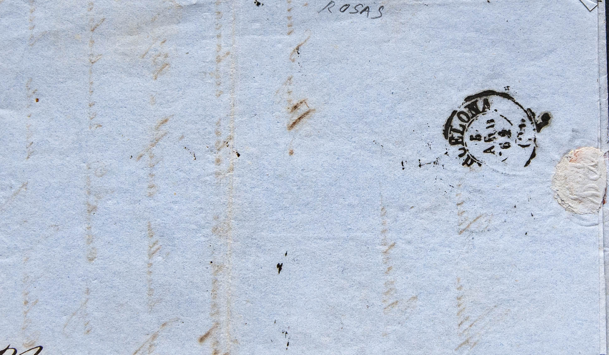 58. 1862. 4 cuartos castaño. ROSAS (GERONA) a BARCELONA. Matasello CASTELLON DE AMPURIAS / GERONA. MAGNIFICA.