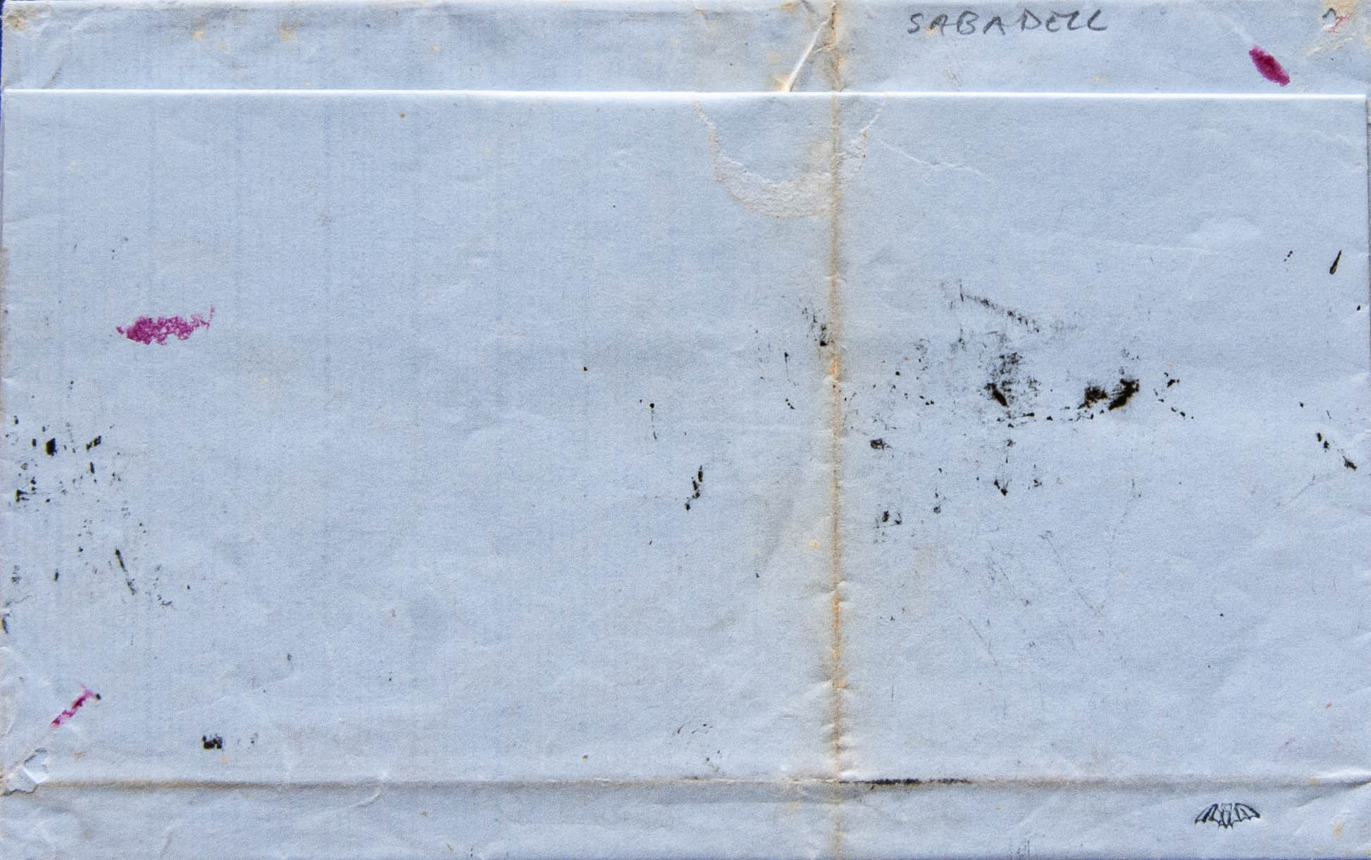 58(3). 1863. 4 cuartos castaño, tira de tres. SABADELL a ZARAGOZA. Matasello SABADELL / BARCELONA. MAGNIFICA E INUSUAL FRANQUEO DE TRIPLE PORTE.