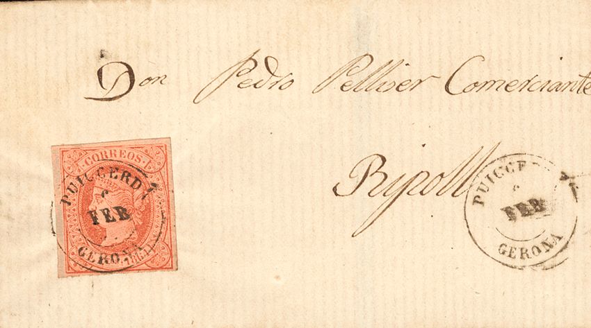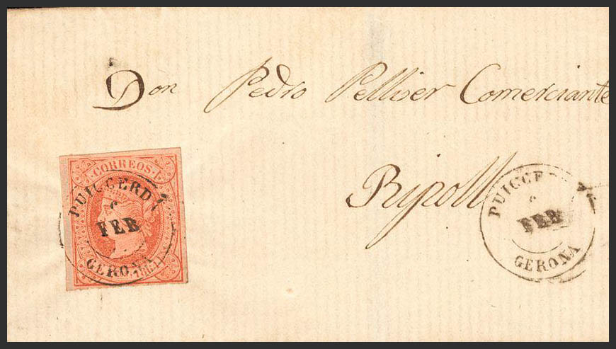 64. 1864. 4 cuartos rosa. PUIGCERDA a RIPOLL. Matasello PUIGCERDA / GERONA. MAGNIFICA.