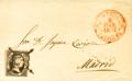 6. 1851. 6 cuartos negro. AGRAMUNT a MADRID. En el frente baeza AGRAMUNT / CATALUÑA, en rojo. MAGNIFICA.