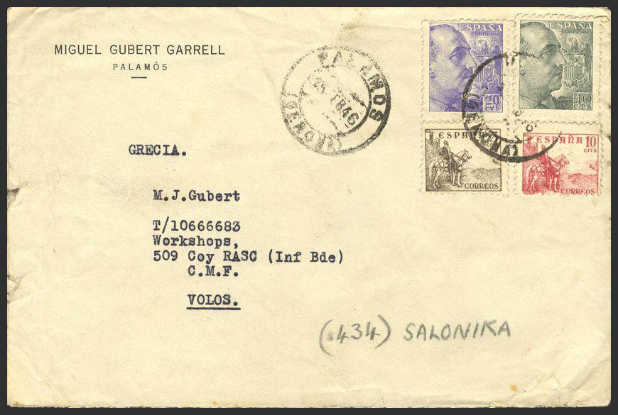 Cataluña. Historia Postal. PALAMOS / (GERONA), al dorso llegada. MAGNIFICA.