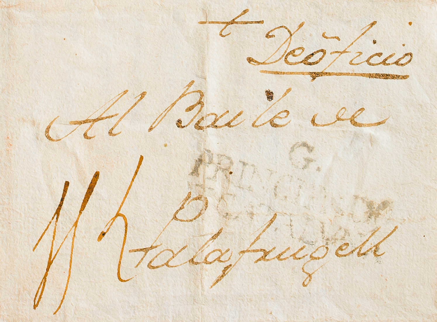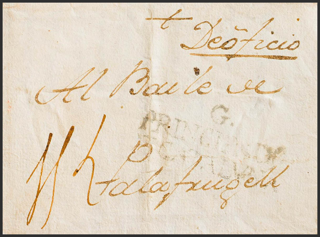 (1779ca). GERONA a PALAFRUGUELL. Marca G. / PRINCIPADO / DE CATALUÑA (P.E.7) edición 2004 (en nuestra opinión y según el texto de la carta, que habla del envÃo de provisiones al ejército del rey en Menorca, la fecha es anterior a 1782, poco antes de la toma de Menorca por las tropas franco-españolas). MAGNIFICA Y RARA.