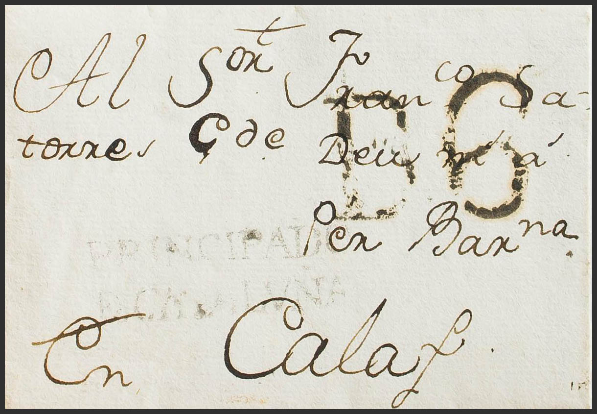 1784. ULLASTRET (GERONA) a CALAF. Marca PRINCIPADO / DE CATALVÑA, de La Bisbal (P.E.3) edición 2004. MAGNIFICA Y MUY RARA.