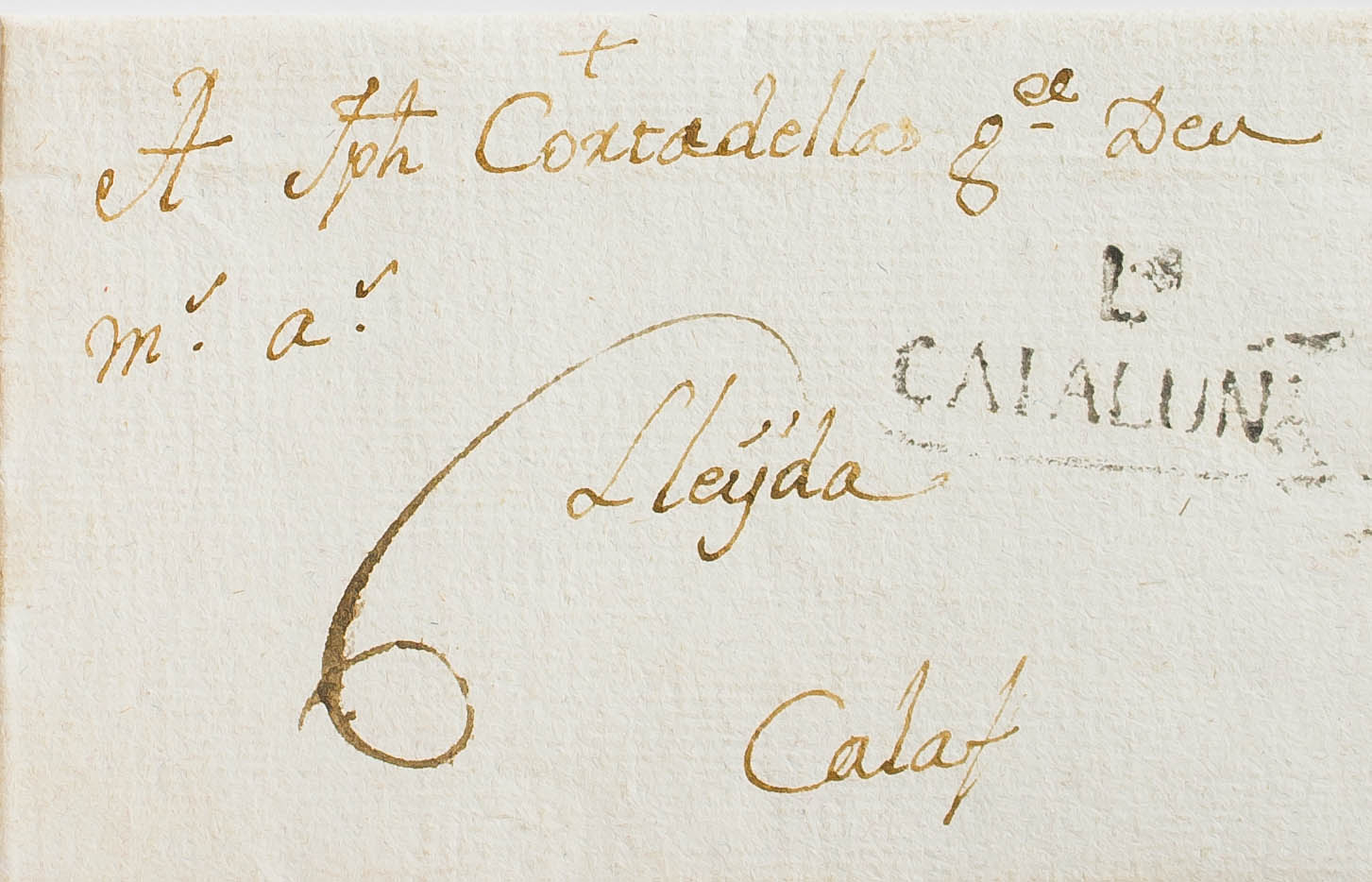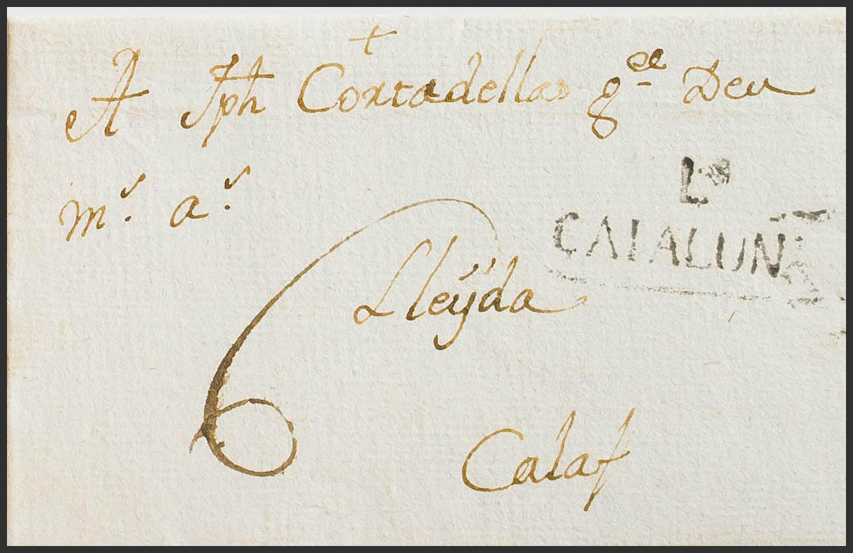 1787. CUBELLS (LERIDA) a CALAF. Marca L. / CATALUÑA, de Lérida (P.E.6) edición 2004. MAGNIFICA Y MUY RARA.