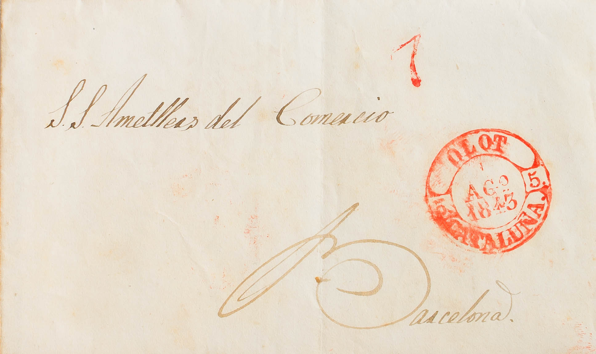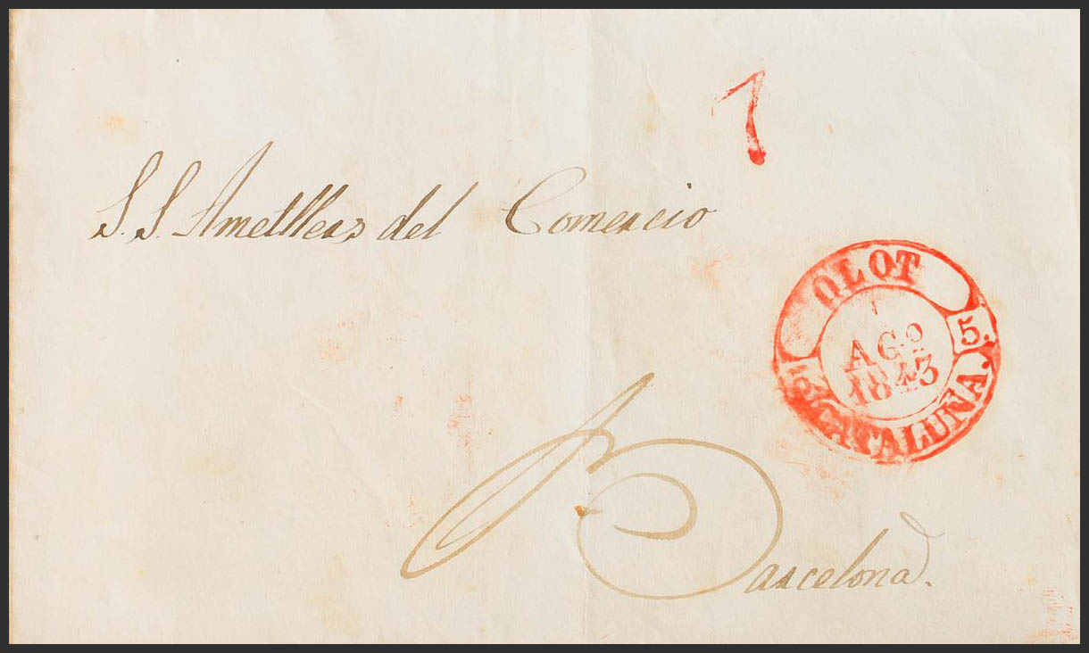 1843. OLOT a BARCELONA. Baeza OLOT / CATALUÑA. MAGNIFICA.