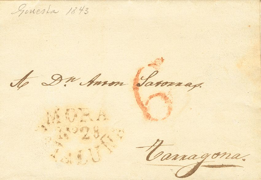 1843. MORA a TARRAGONA. Marca MORA / CATALUÑA (P.E. 4) edición 2004. MAGNIFICA Y RARA.