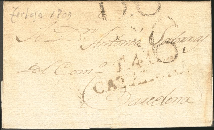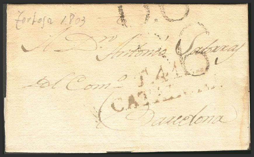 1803. TORTOSA a BARCELONA. Marca T. 41 / CATALUÑA (P.E. 6) edición 2004. MAGNIFICA.