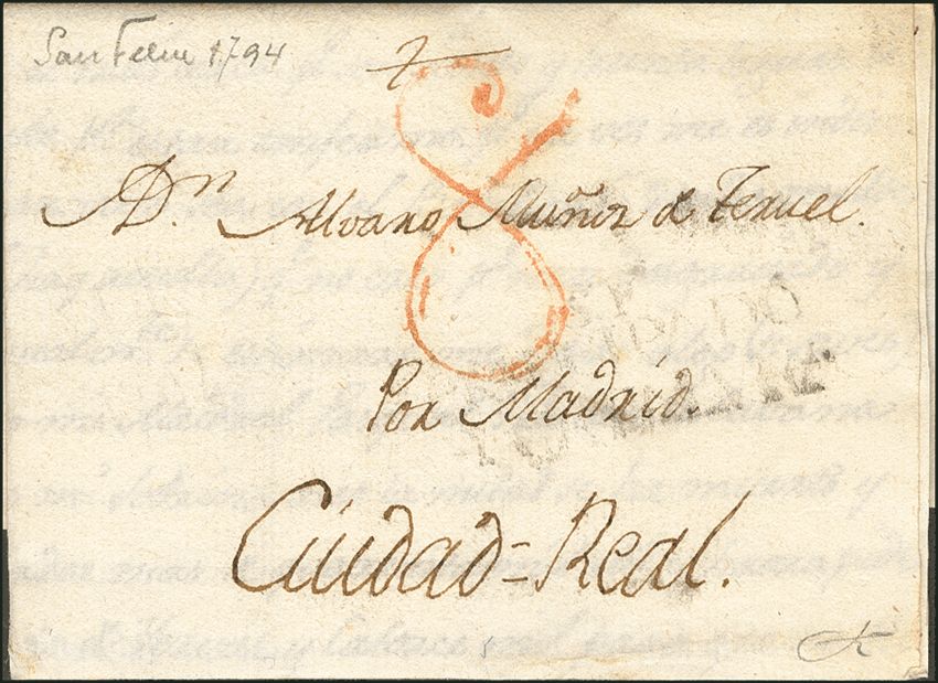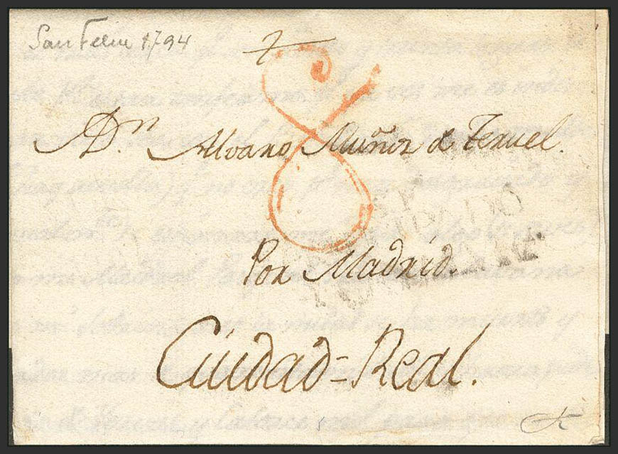 1794. SAN FELIU a CIUDAD REAL. Marca S.F. / FRANQUEADO / CATALUÑA (P.E. 2) edición 2004. MAGNIFICA Y MUY RARA.