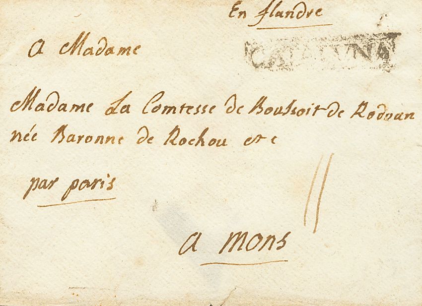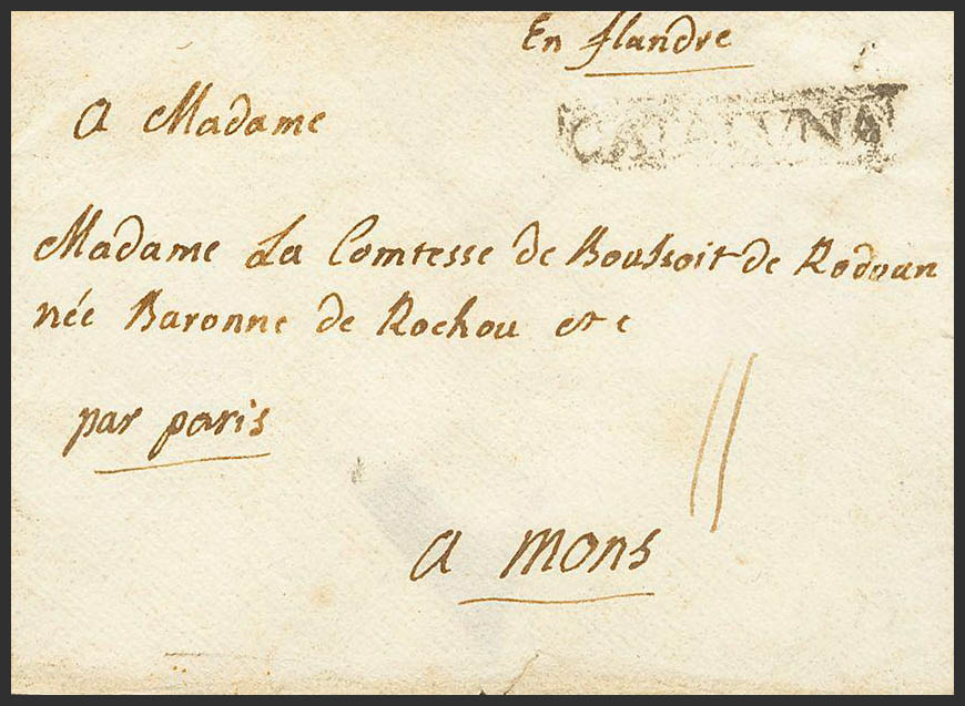 1773. BARCELONA a MONS (BELGICA). Marca CATALUÑA, en negro (P.E.42) edición 2004. MAGNIFICA Y RARA.