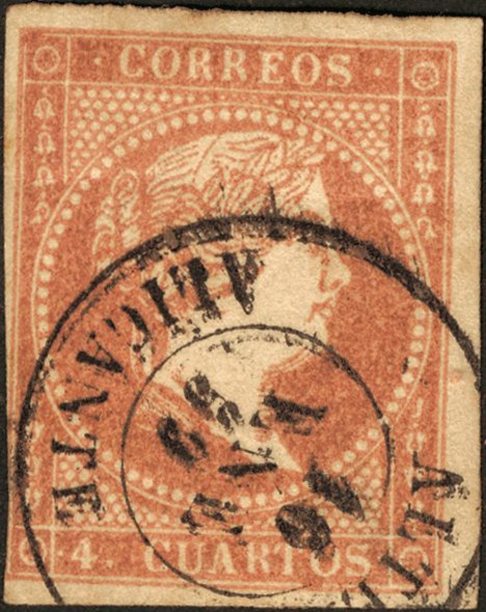 48. 1856. 4 cuartos rojo. Matasello ALTEA / ALICANTE.