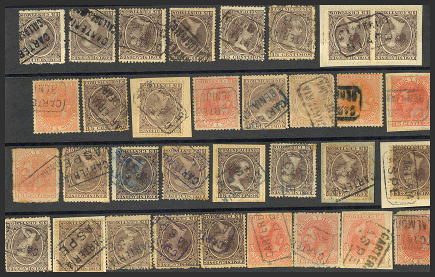210, 219. (1900ca). Colección de carterÃas de la provincia de ALICANTE, generalmente buenas estampaciones. IMPRESCINDIBLE EXAMINAR.