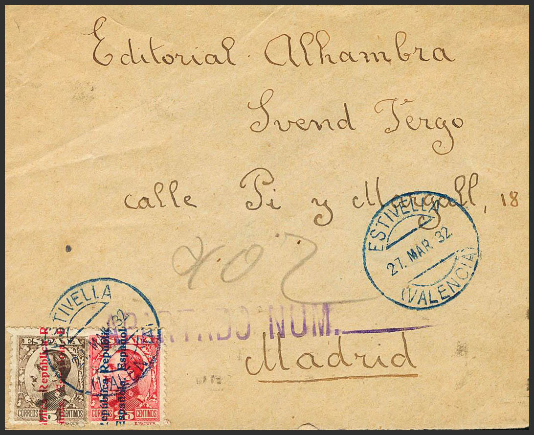 Comunidad Valenciana. Historia Postal. ESTIVELLA / (VALENCIA), en azul. MAGNIFICA.