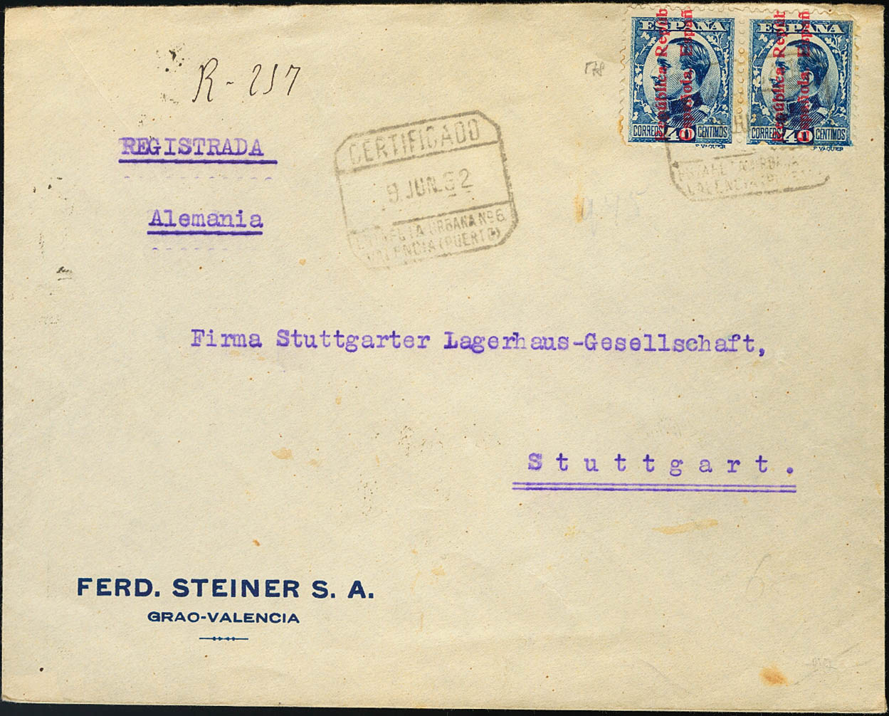 Comunidad Valenciana. Historia Postal. CERTIFICADO / VALENCIA (PUERTO), al dorso llegada. MAGNIFICA.