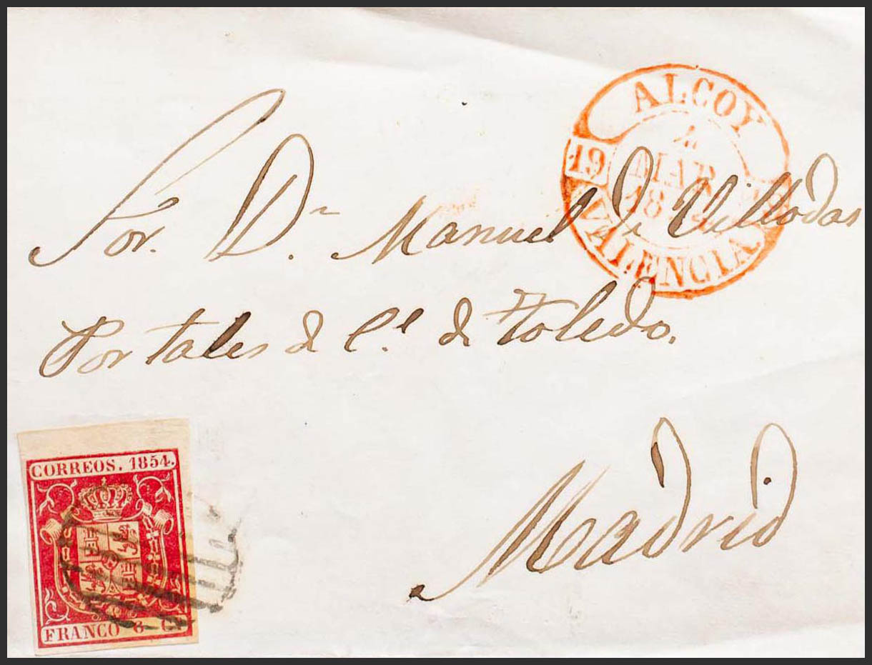 Comunidad Valenciana. Historia Postal. Borde de hoja. ALCOY / VALENCIA. MAGNIFICA.