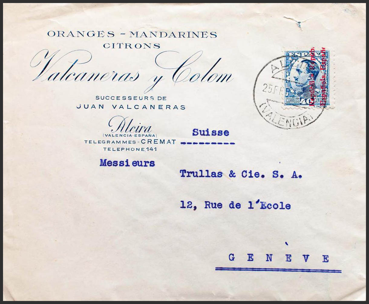 Comunidad Valenciana. Historia Postal. ALCIRA / (VALENCIA), al dorso llegada. MAGNIFICA.