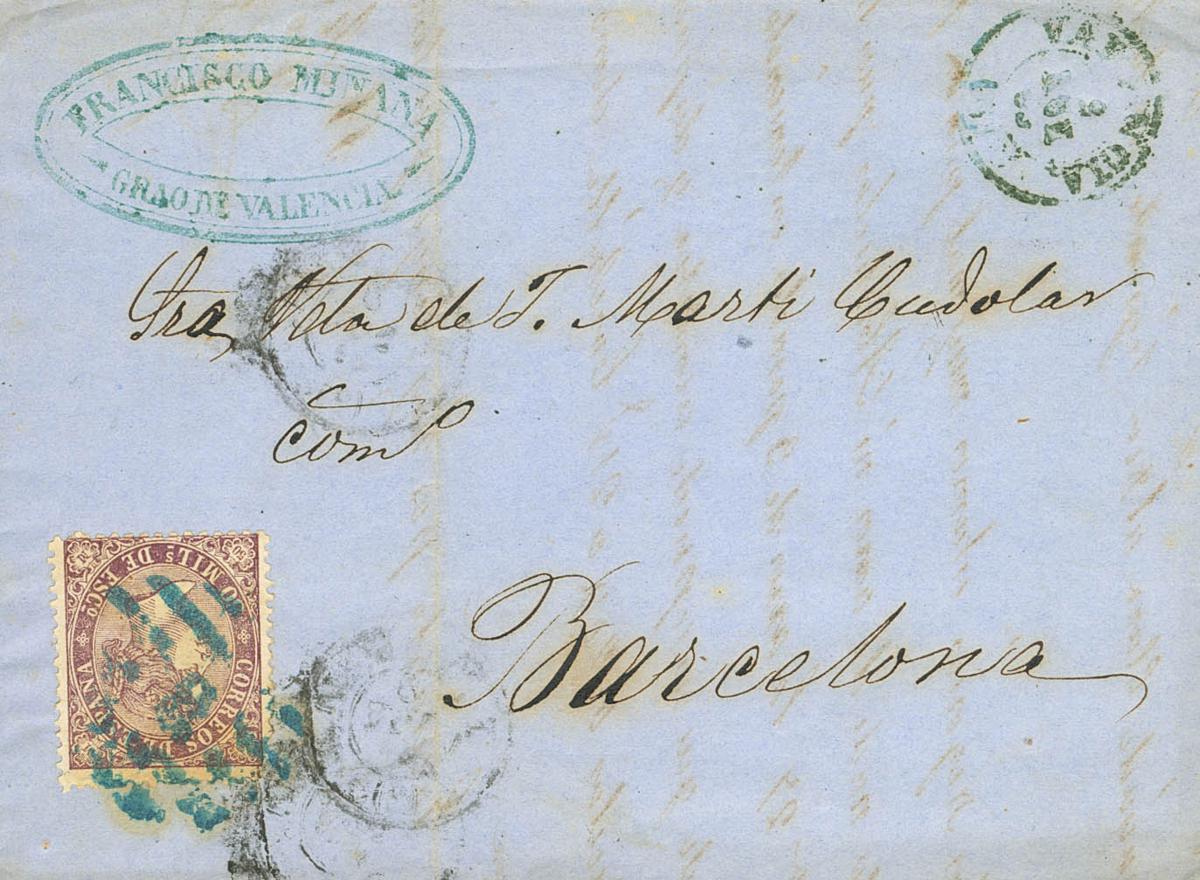Comunidad Valenciana. Historia Postal. PARRILLA Nº8, en azul de Valencia. MAGNIFICA.