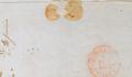 12. 1852. 6 cuartos rosa (pliegue de archivo). CULLERA a BARCELONA. En el frente baeza CULLERA / VALENCIA, en rojo. MAGNIFICA.