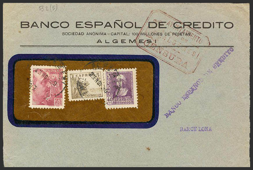 Comunidad Valenciana. Historia Postal. AYUNTAMIENTO / DE / ALGEMESI / CENSURA. MAGNIFICA Y RARA.